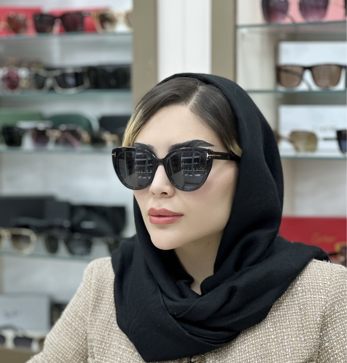عینک افتابی زنانه از برند تامفورد مدل۰۸۴۴٫با فریم گربه ای که داره صورتخور کارو خیلی جذاب کرده و یکاره متفاوت و منحصر بفرده٫وزن سبکی داره مناسب استایل رسمی و اسپرت